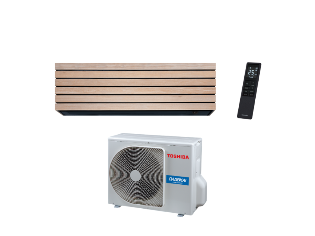 Klima uređaj Toshiba Daiseikai 10 2.5 kW sastoji se od unutarnje jedinice oznake RAS-B13S4KVDG-E, vanjske jedinice RAS-13S4AVPG-E i infracrvenog daljinskog upravljača.