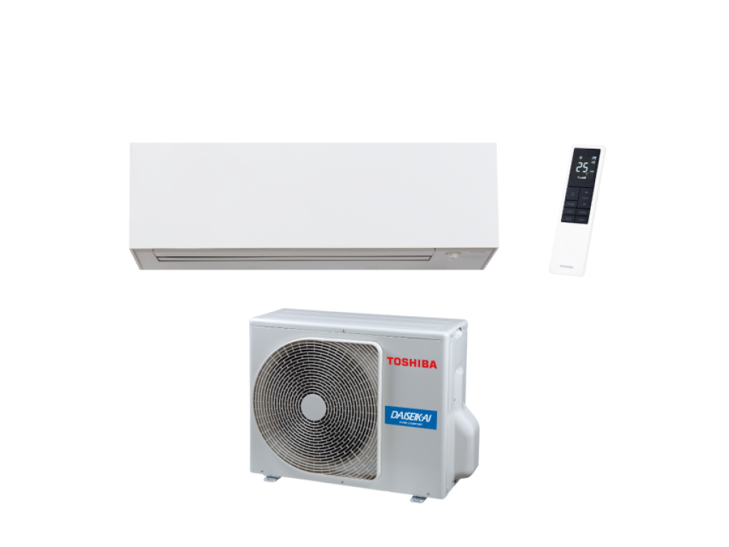 Klima uređaj Toshiba Daiseikai 10 2.5 kW sastoji se od unutarnje jedinice oznake RAS-B18S4KVPG-E, vanjske jedinice RAS-18S4AVPG-E i infracrvenog daljinskog upravljača.